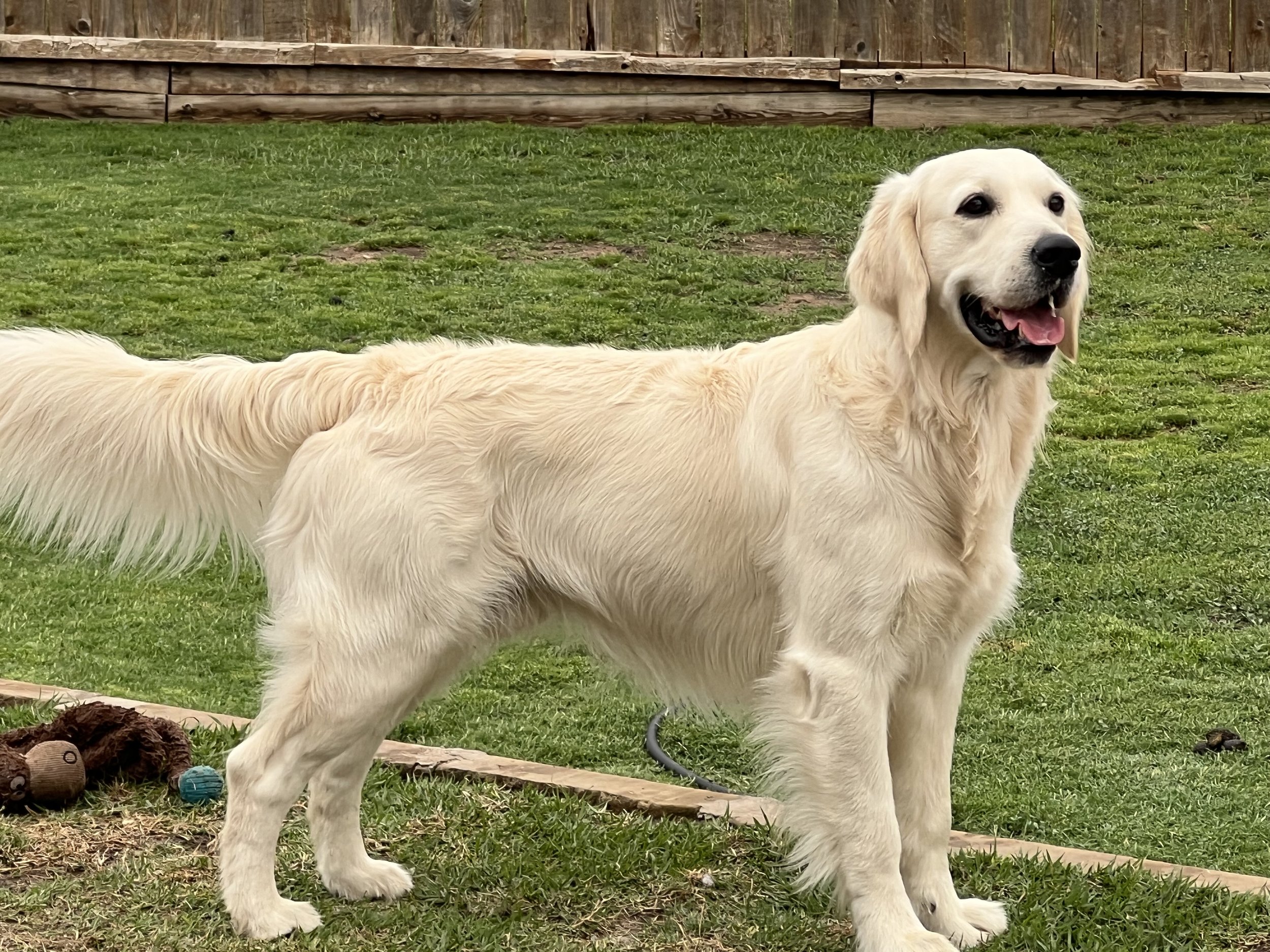 Lou, the stunning golden retriever, boasts a thick coat that invites you to run your fingers through it. His favorite pastime is fetching his ball, swimming and he relishes cuddle time. He's a breeze to train, even-tempered, gentle, and remarkably intelligent.