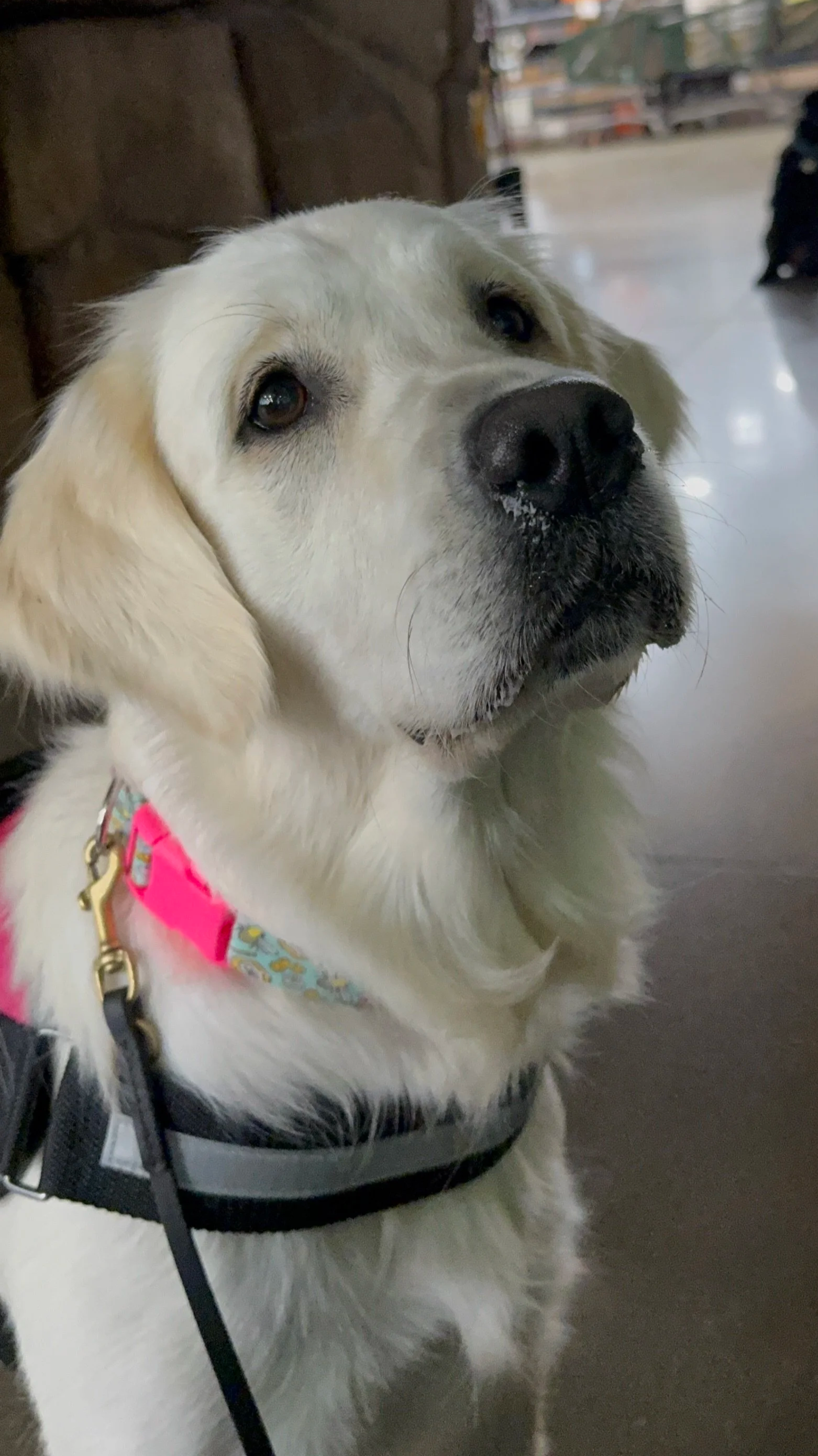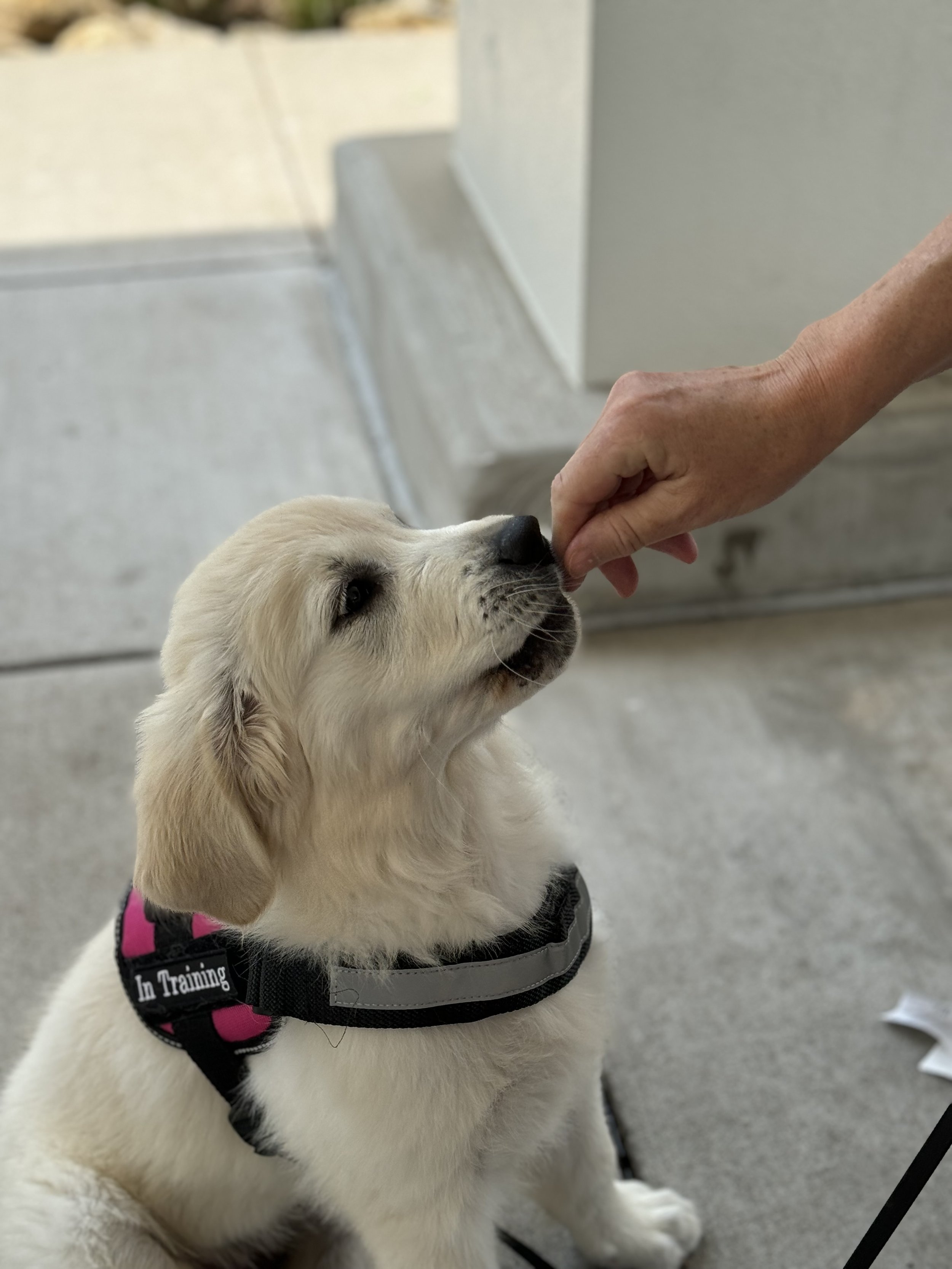 She loves to play tug, go on walks, and happily engage with new environments and experiences. Bee is currently in training as she prepares to pursue therapy work once she turns two, and we look forward to watching her grow into that role with the same gentleness and enthusiasm she shows every day.