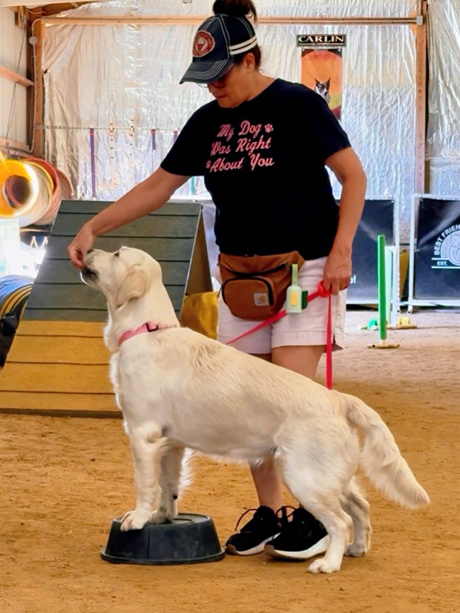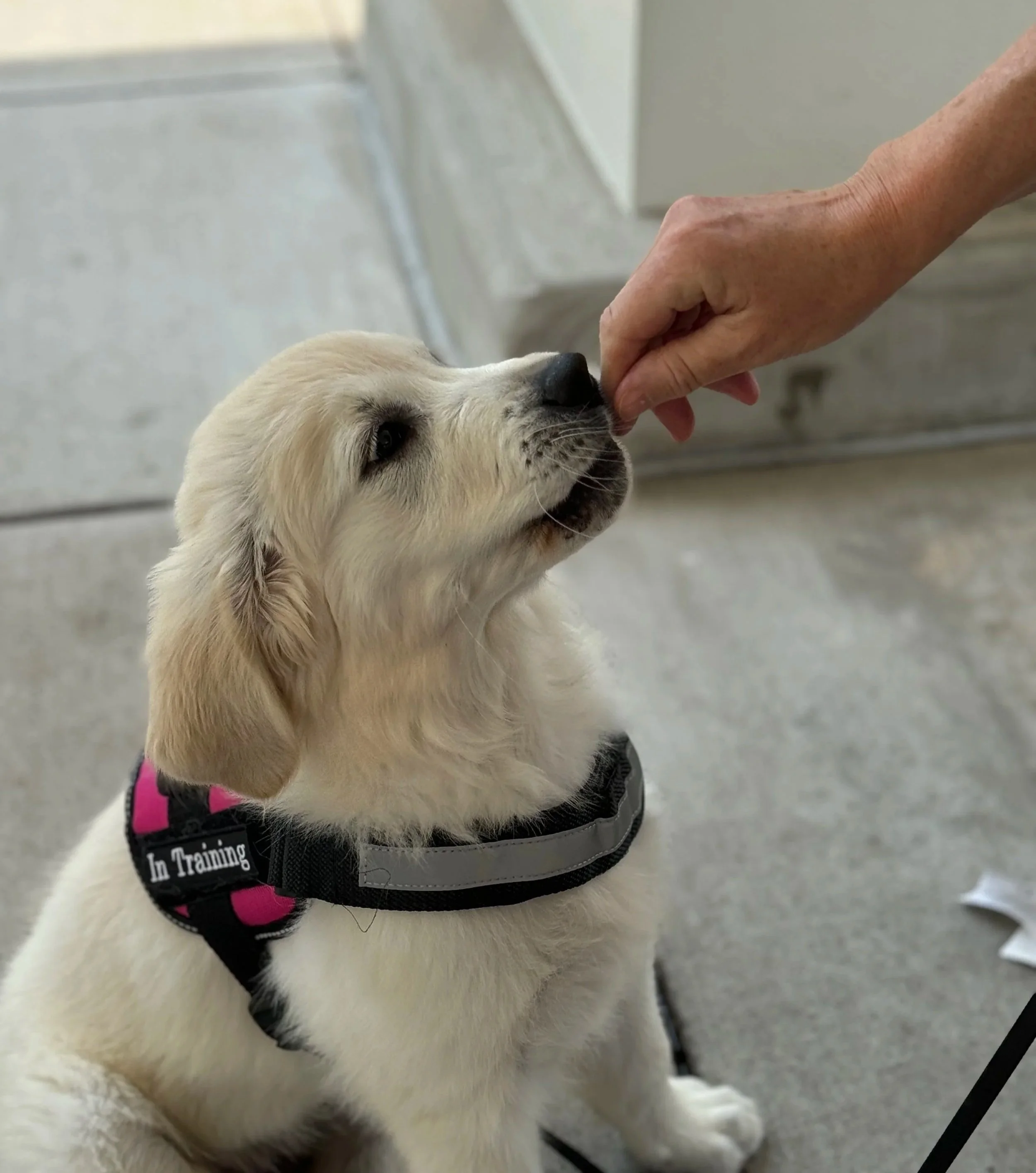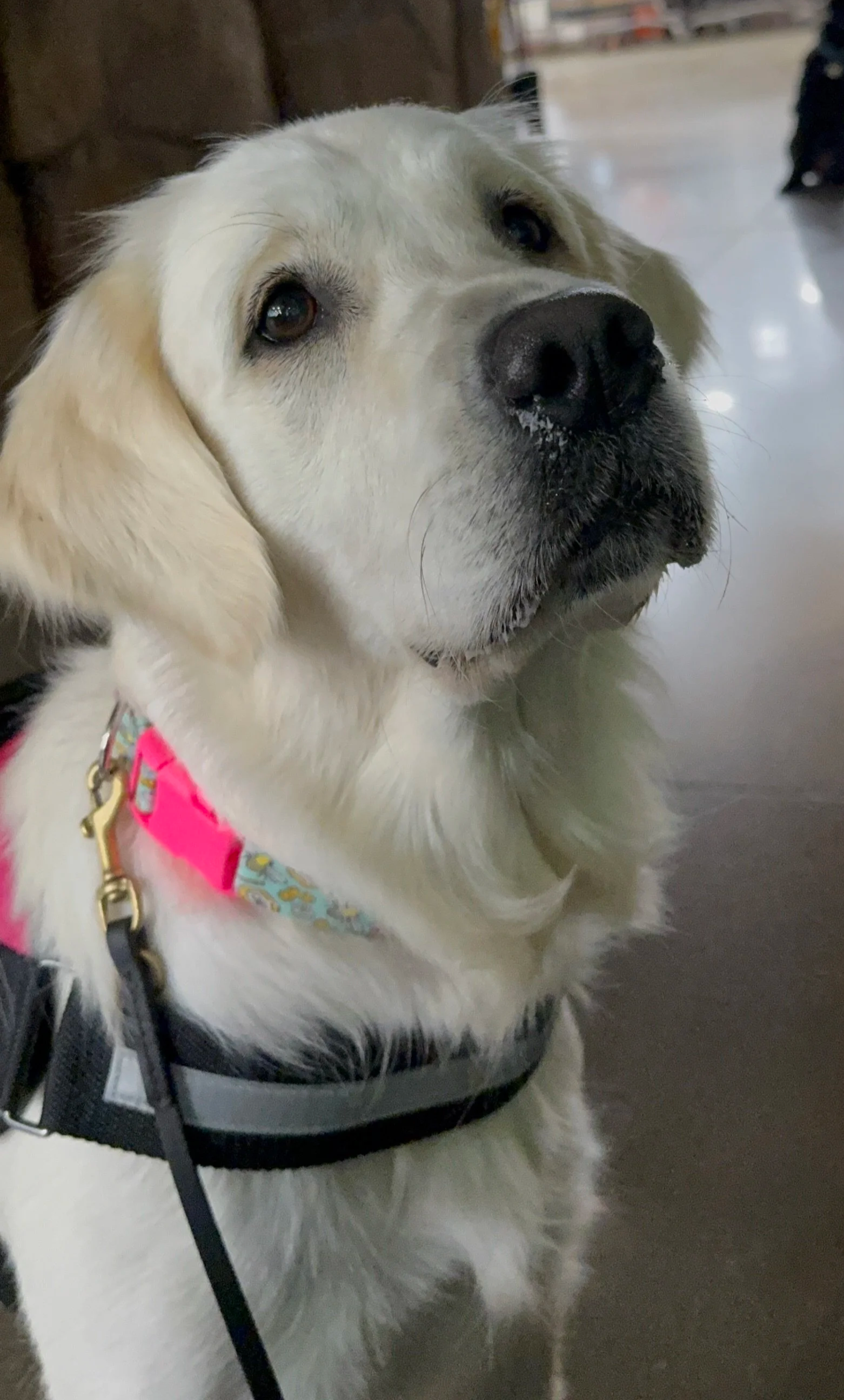 She loves to play, go on walks, and confidently engage with new environments and experiences. Bee is currently in training as she prepares to pursue therapy work, and we look forward to watching her grow into that role with the same gentleness and enthusiasm she shows every day.